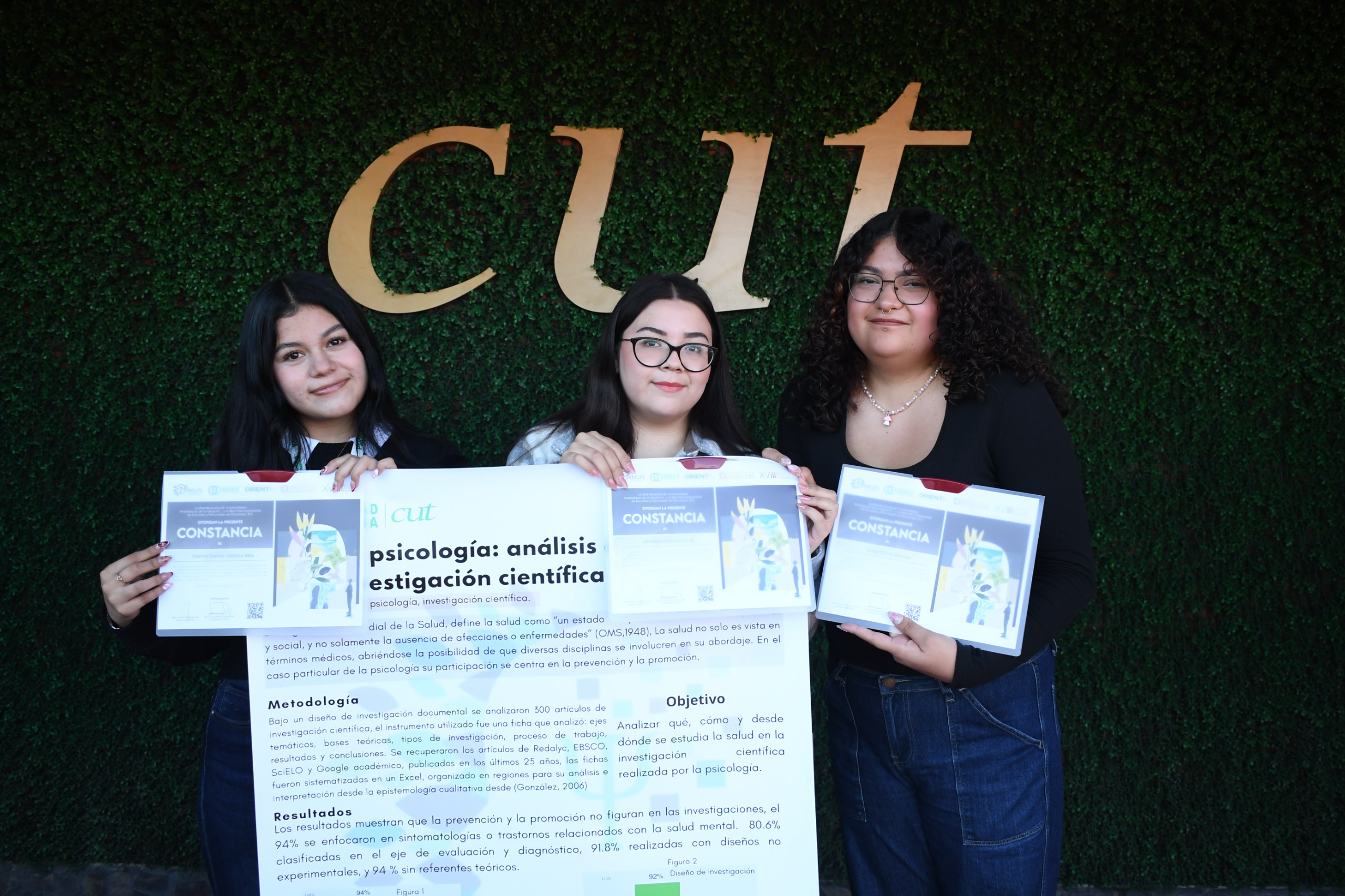 De manera especial, se reconoció a las estudiantes Valeria Danaly Saldaña Alba, Karen Cortez Moreno y Viridianna García Corral, cuyo cartel titulado «Salud y psicología: análisis de la investigación científica» obtuvo una evaluación sobresaliente en la categoría de Carteles de Investigación de estudiantes de psicología.