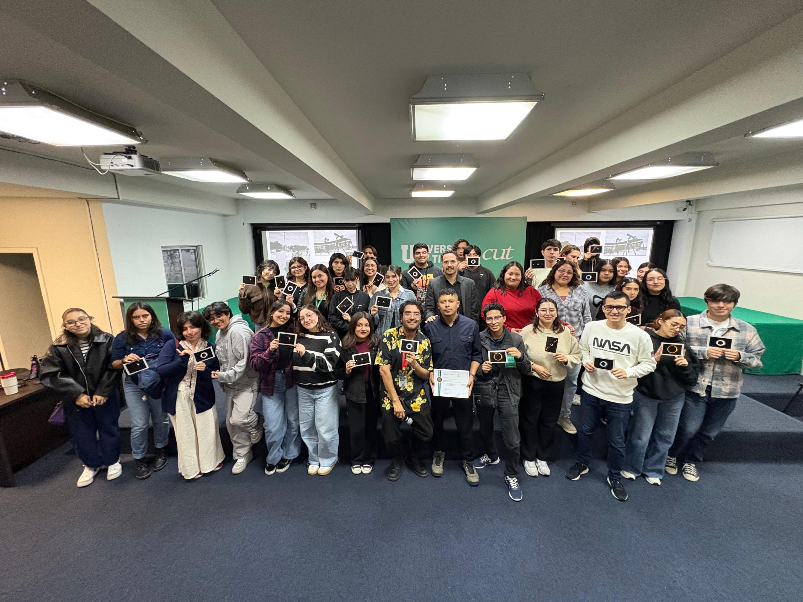Para cerrar el encuentro, el Coordinador Académico de Comunicación y Publicidad, maestro Osvaldo Fabián Muñoz Pérez, entregó reconocimientos a Luis Gutiérrez y Adrián Flores por compartir su experiencia con los estudiantes de la Universidad de Tijuana. Además, se obsequiaron postales con las fotografías tomadas el 8 de abril de 2024 en Concordia, un detalle que permitió a los asistentes llevarse consigo una parte de esta experiencia única, reflejo del trabajo y la dedicación que implica capturar un fenómeno astronómico irrepetible.
