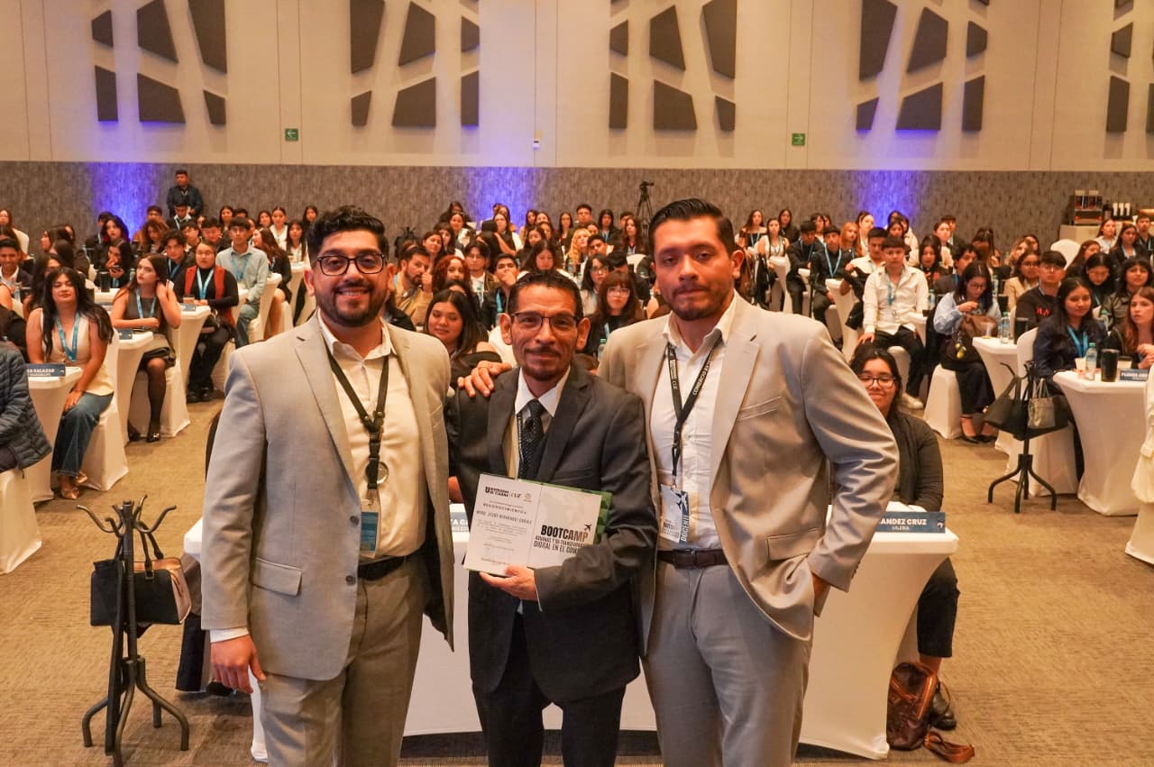Al finalizar la conferencia, el maestro Juan Eduardo Cano Cantúa, coordinador académico de la Licenciatura en Comercio Exterior y Legislación Aduanera, acompañado por el maestro Frank Jacob Karo Palestino, docente de tiempo completo de la Universidad de Tijuana CUT, hicieron entrega de un reconocimiento al maestro Jesús Hernández Chávez como muestra de agradecimiento por su valiosa participación en el BootCamp Comercio Exterior y Aduanas 2025, destacando su contribución al fortalecimiento académico y profesional de los estudiantes en temas clave de innovación aduanera.